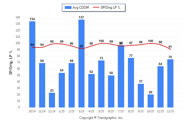 December 2025 Average Continuous Days on Market trend Remains Steady and Sold/Original List Price Ratio was Falling**
