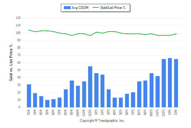 February 2026 Average Continuous Days on Market trend Remains Steady and Sold/List Price Ratio Remains Steady**