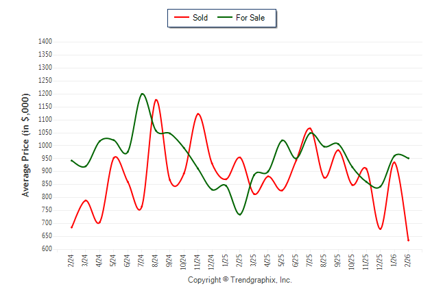 February 2026 Average For Sale Price was Neutral and Average Sold Price was Depreciating**