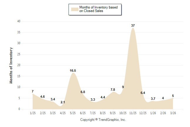 Curnt vs. Same Month 1 Yr Ago: Months of Inventory (Closed Sales)