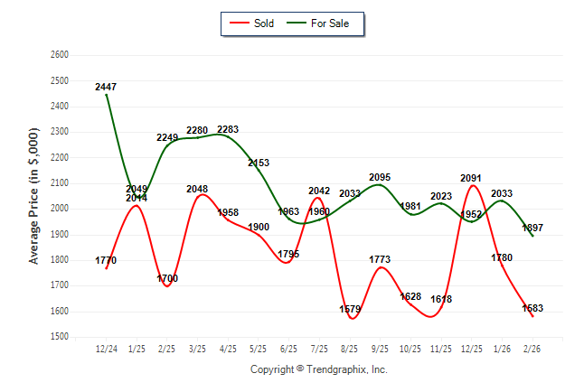 February 2026 Average For Sale Price was Depreciating and Average Sold Price was Neutral**