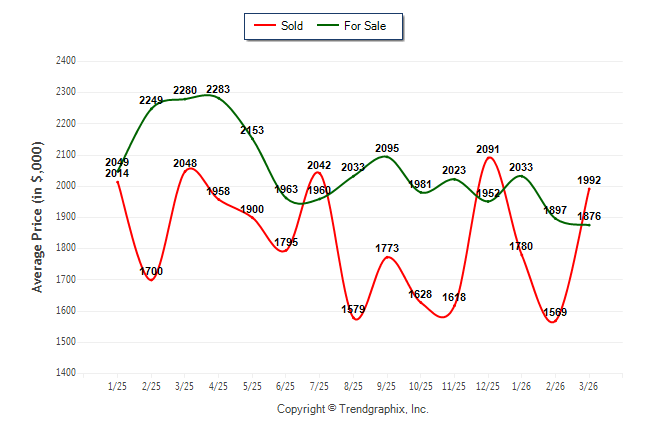 March 2026 Average For Sale Price was Depreciating and Average Sold Price was Appreciating**