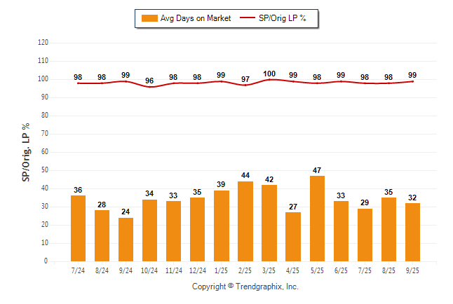 September 2025 Average Days on Market trend Remains Steady and Sold/Original List Price Ratio Remains Steady**