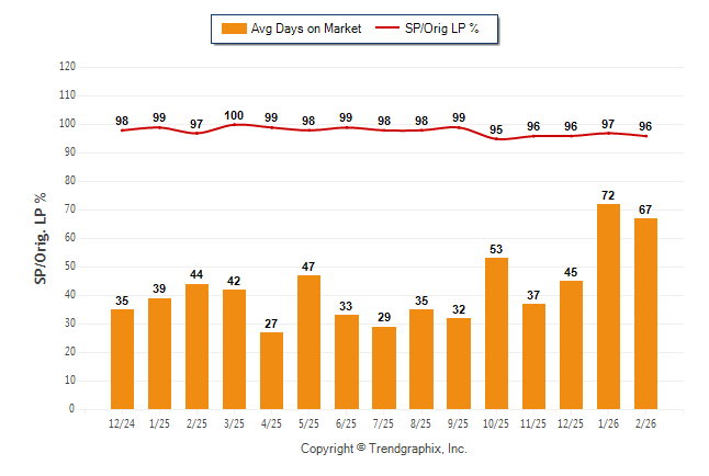 February 2026 Average Days on Market trend Remains Steady and Sold/Original List Price Ratio was Falling**