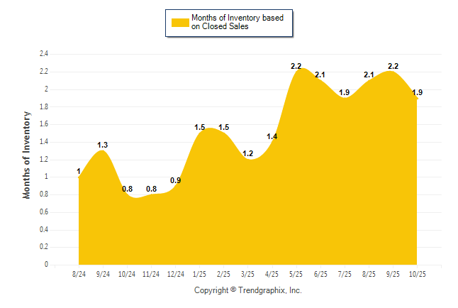 Curnt vs. Same Month 1 Yr Ago: Months of Inventory (Closed Sales)