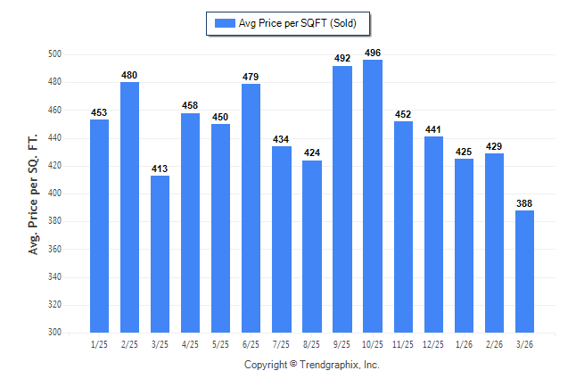 March 2026 Average Sold Price per Square Footage was Depreciating**