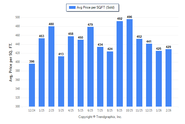 February 2026 Average Sold Price per Square Footage was Neutral**