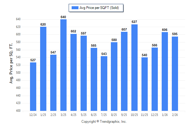 February 2026 Average Sold Price per Square Footage was Neutral**