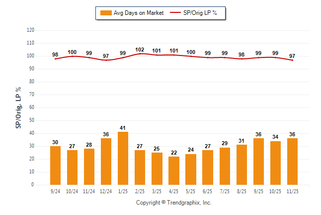 November 2025 Average Days on Market trend was Rising and Sold/Original List Price Ratio was Falling**
