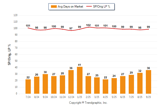 September 2025 Average Days on Market trend was Rising and Sold/Original List Price Ratio Remains Steady**