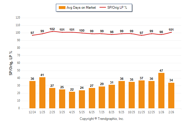 February 2026 Average Days on Market trend Remains Steady and Sold/Original List Price Ratio was Rising**