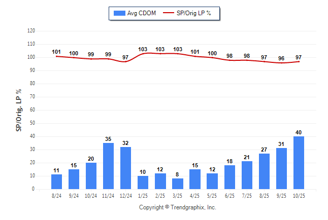 October 2025 Average Continuous Days on Market trend was Rising and Sold/Original List Price Ratio Remains Steady**