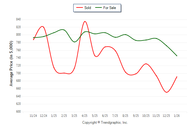 January 2026 Average For Sale Price was Depreciating and Average Sold Price was Neutral**