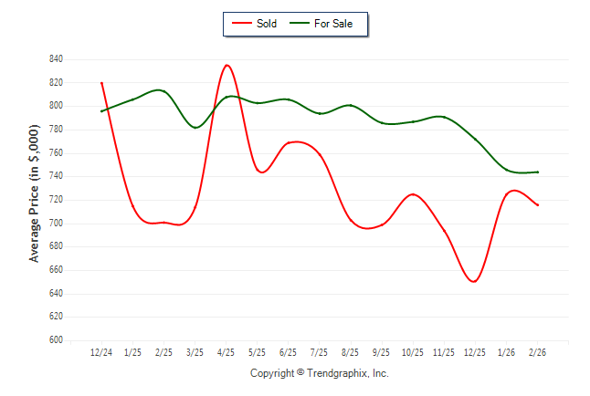 February 2026 Average For Sale Price was Depreciating and Average Sold Price was Neutral**