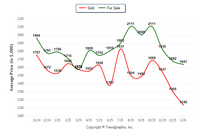 January 2026 Average For Sale Price was Depreciating and Average Sold Price was Depreciating**