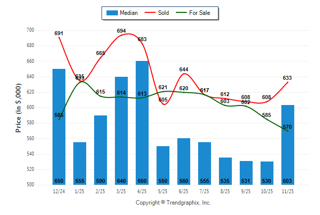 November 2025 Median Price was Appreciating, Avg. For Sale Price was Depreciating, and Avg. Sold Price was Neutral**