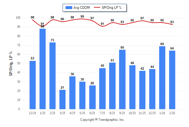 February 2026 Average Continuous Days on Market trend Remains Steady and Sold/Original List Price Ratio Remains Steady**