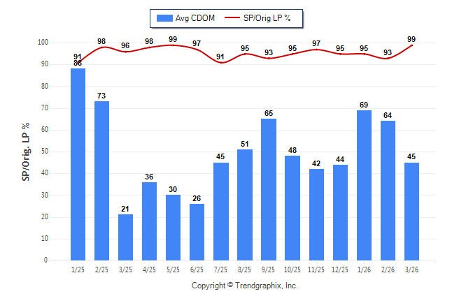 March 2026 Average Continuous Days on Market trend Remains Steady and Sold/Original List Price Ratio Remains Steady**