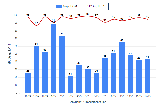 December 2025 Average Continuous Days on Market trend Remains Steady and Sold/Original List Price Ratio Remains Steady**