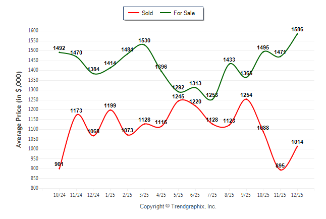 December 2025 Average For Sale Price was Appreciating and Average Sold Price was Neutral**