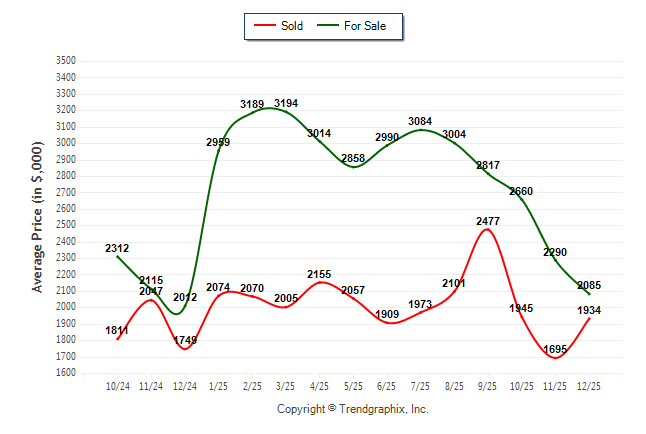 December 2025 Average For Sale Price was Depreciating and Average Sold Price was Neutral**