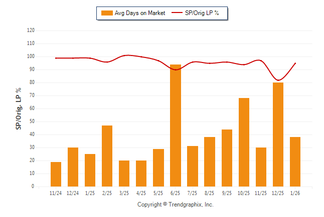 January 2026 Average Days on Market trend Remains Steady and Sold/Original List Price Ratio Remains Steady**