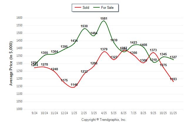 November 2025 Average For Sale Price was Neutral and Average Sold Price was Depreciating**