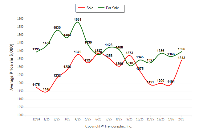 February 2026 Average For Sale Price was Appreciating and Average Sold Price was Neutral**