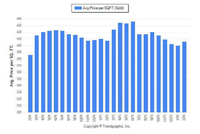 February 2026 Average Sold Price per Square Footage was Neutral**