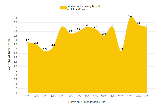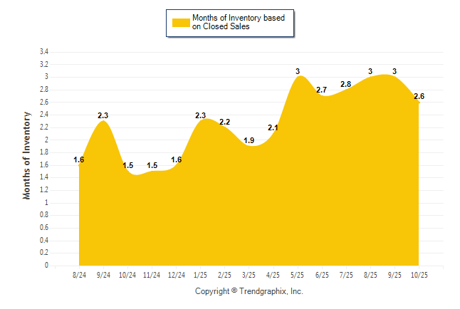Curnt vs. Same Month 1 Yr Ago: Months of Inventory (Closed Sales)