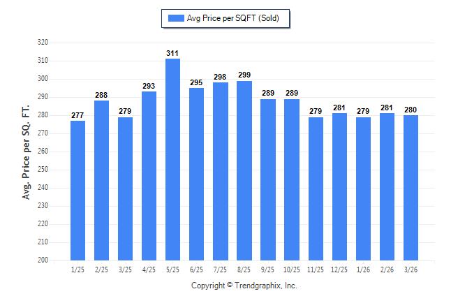 March 2026 Average Sold Price per Square Footage was Neutral**