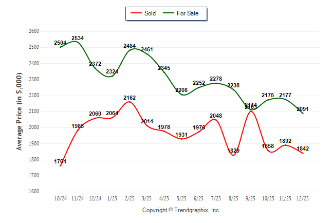 December 2025 Average For Sale Price was Depreciating and Average Sold Price was Depreciating**