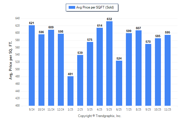 November 2025 Average Sold Price per Square Footage was Appreciating**
