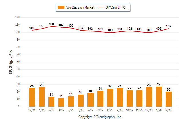 February 2026 Average Days on Market trend Remains Steady and Sold/Original List Price Ratio was Rising**