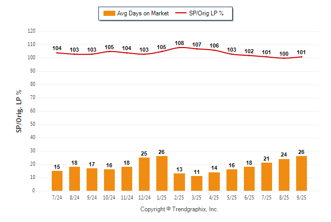 September 2025 Average Days on Market trend was Rising and Sold/Original List Price Ratio Remains Steady**