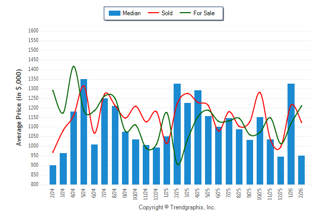 February 2026 Median Price was Neutral, Avg. For Sale Price was Appreciating, and Avg. Sold Price was Neutral**