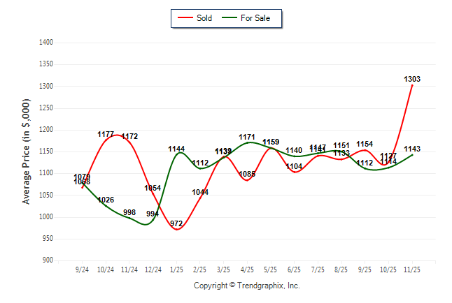 November 2025 Average For Sale Price was Neutral and Average Sold Price was Appreciating**