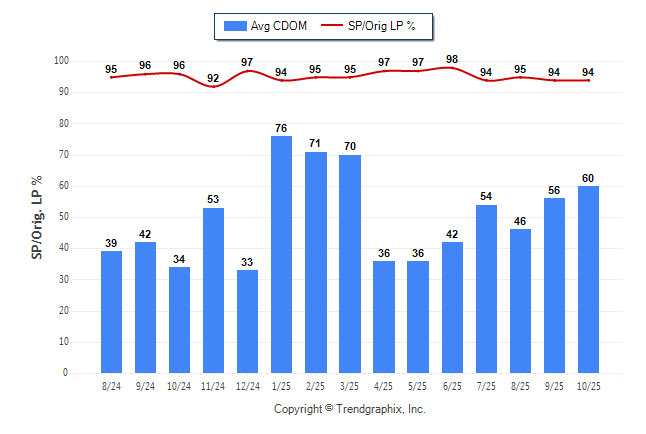 October 2025 Average Continuous Days on Market trend was Rising and Sold/Original List Price Ratio was Falling**