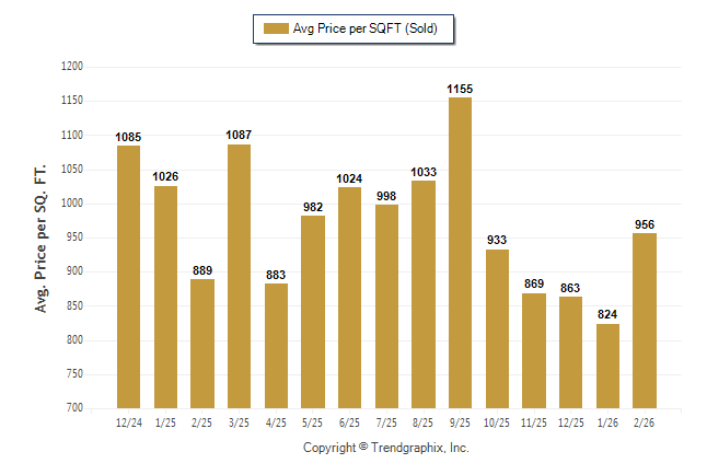 February 2026 Average Sold Price per Square Footage was Neutral**