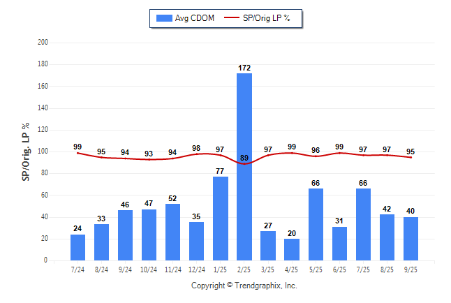 September 2025 Average Continuous Days on Market trend Remains Steady and Sold/Original List Price Ratio was Falling**