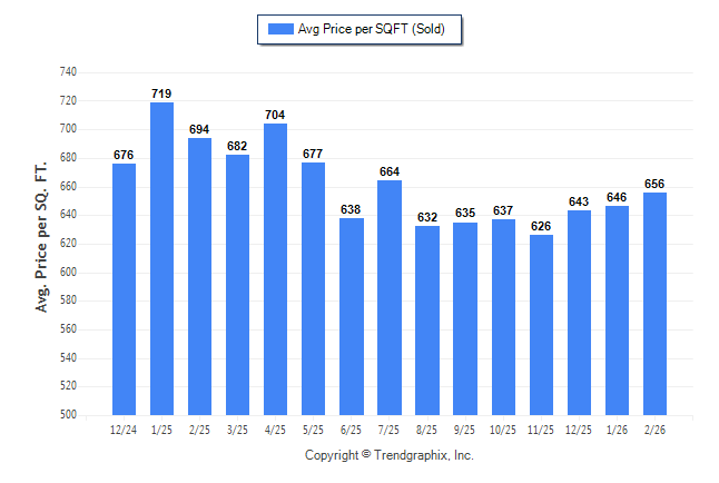 February 2026 Average Sold Price per Square Footage was Appreciating**