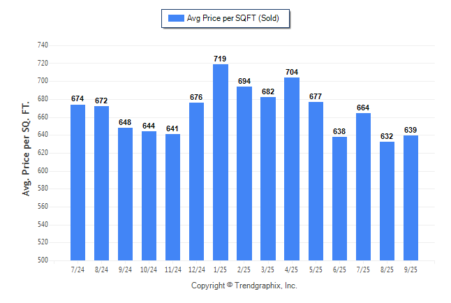 September 2025 Average Sold Price per Square Footage was Neutral**