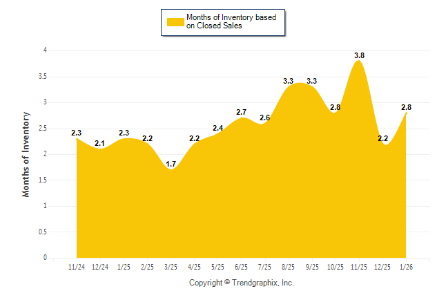 Curnt vs. Same Month 1 Yr Ago: Months of Inventory (Closed Sales)