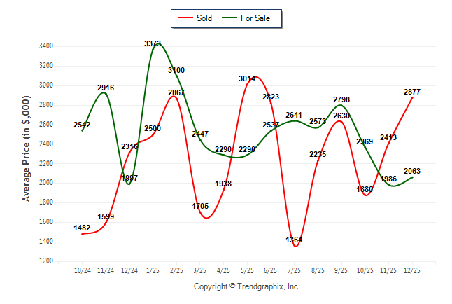December 2025 Average For Sale Price was Neutral and Average Sold Price was Appreciating**