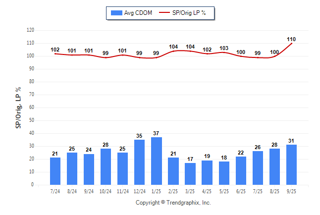 September 2025 Average Continuous Days on Market trend was Rising and Sold/Original List Price Ratio was Rising**