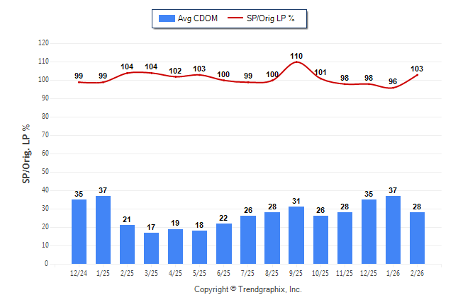February 2026 Average Continuous Days on Market trend Remains Steady and Sold/Original List Price Ratio Remains Steady**