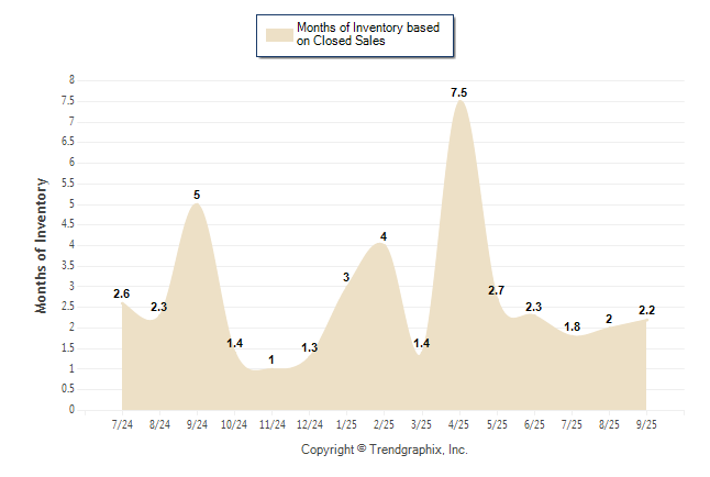 Curnt vs. Same Month 1 Yr Ago: Months of Inventory (Closed Sales)