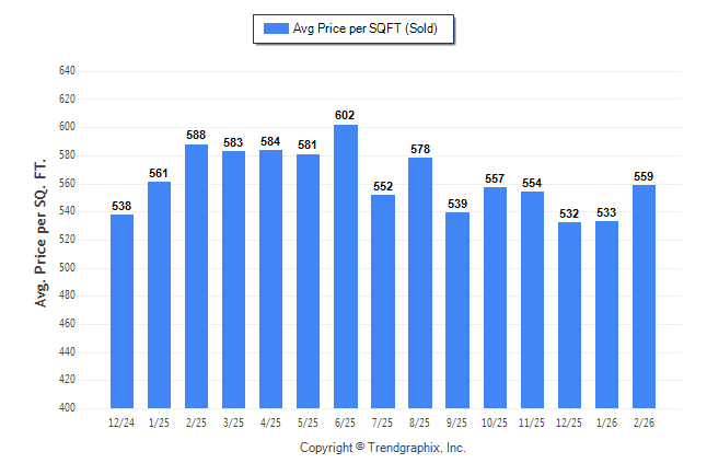 February 2026 Average Sold Price per Square Footage was Neutral**