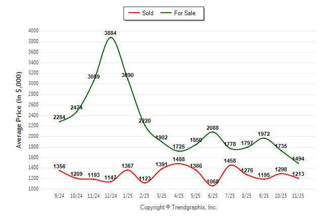 November 2025 Average For Sale Price was Depreciating and Average Sold Price was Neutral**