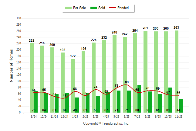 Curnt vs. Same Month 1 Yr Ago: For Sale up25.8% | Sold down-27.9% | Pended up7.7%
